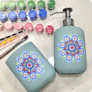 每位學員可自由選擇創作在乳液瓶或束口杯上,